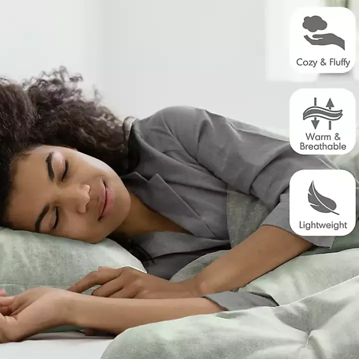 Crafted from soft and breathable microfiber, this Green Chambray 3-pc. King Comforter Set is casual and comfortable. Lightweight, yet warm, it adds an extra layer of coziness that is perfect for year-round use.