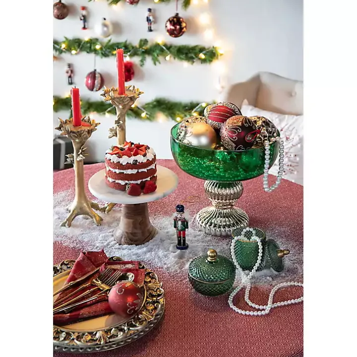 Get creative this holiday season with this elegant Green Glass Vase with Gold Pedestal Base! The green glass bowl is perfect for filling with all kinds of holiday décor, like Christmas ornaments, festive bowl filler, or seasonal florals!
