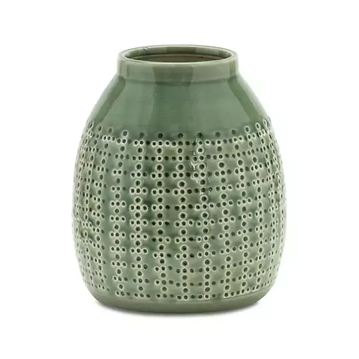 With its rich, earthy hue, this Green Terracotta Dotted Vase will make a wonderful addition to your bookshelf or mantel! It looks lovely with flowers or simply on their own!