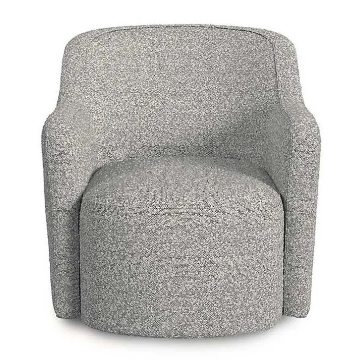 Take this Heather Gray Boucle Swivel Barrel Accent Chair for a spin! You’re sure to love the comfortable barrel shape, swivel capability, and the cozy, stylish boucle upholstery.