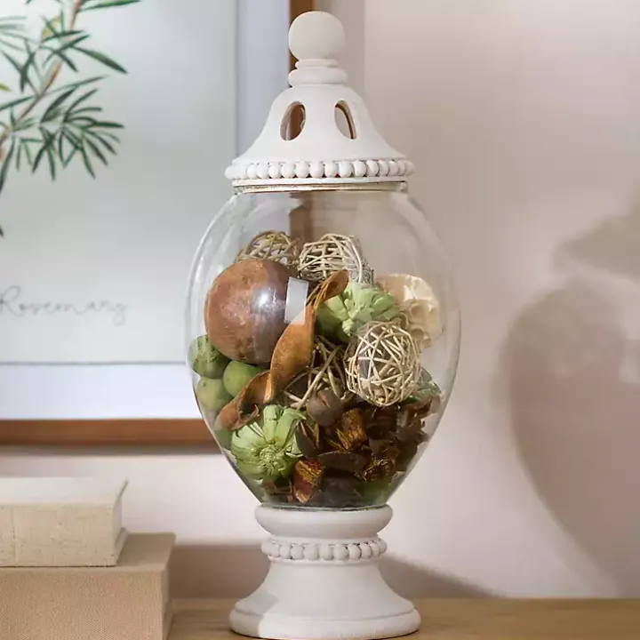 Turn your potpourri into an accent piece with our Ivory Beaded Glass Potpourri Jar! This elegant jar is perfect for diffusing and displaying your favorite fragrances or seasonal scents.