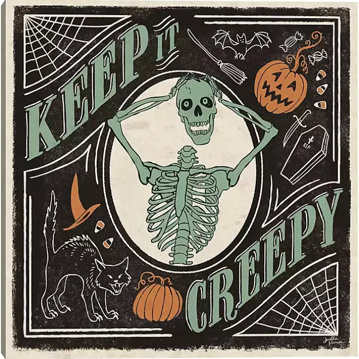 This Keep It Creepy Canvas Art Print will give your space a spooky touch this Halloween. With its striking, retro style, it will add a fun and frightful flair to your home!