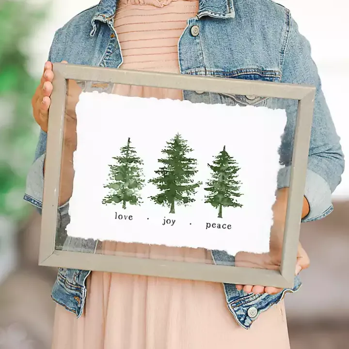 Transition your walls for winter with this Love Joy Peace Trees Wall Plaque. Its lovely pine trees will put the perfect seasonal accent on your space!