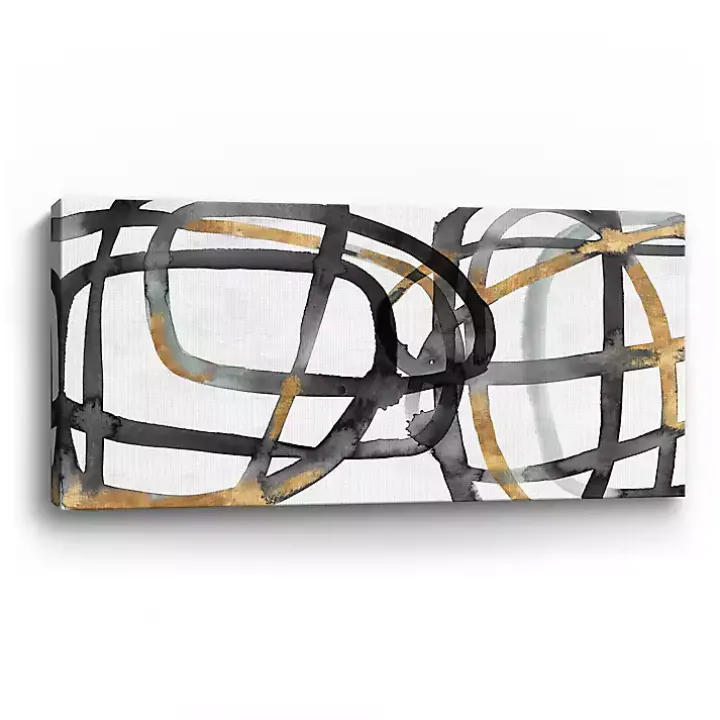 Make your accent wall pop with sophisticated style! Our Many Ways Abstract Canvas Art Print features a neutral palette with glints of gold accents that are sure to improve any space.