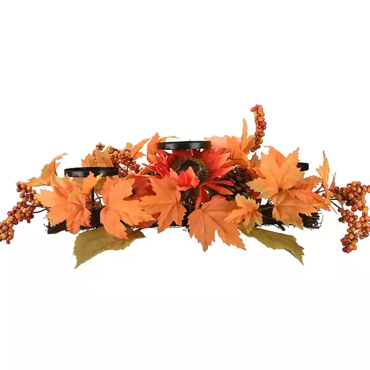 All of your fall tablescapes will look gorgeous with this Maple Leaf Candleholder Centerpiece. While the three metal plates elevate your pillar candles, the lush foliage creates a warm, autumnal feel.