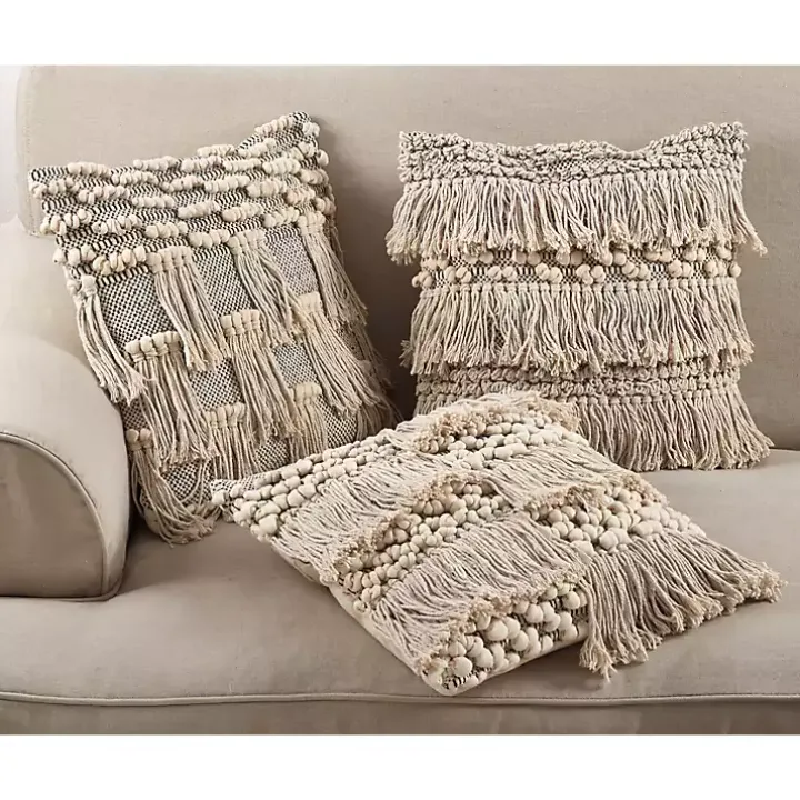 Turn your couch into the bohemian comfort oasis of your dreams! Featuring a natural ivory color, this Mari Moroccan Fringe Chunky Knit Pillow is the perfect addition.