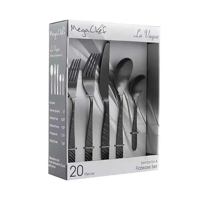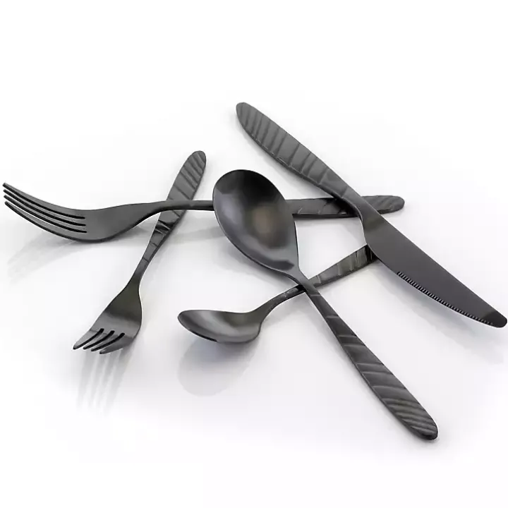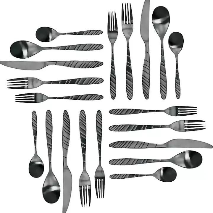 Express your modern sense of style down to the last detail! You’ll love eating meals with the sleek, industrial look of this Matte Black Steel Diagonal 20-pc. Flatware Set!