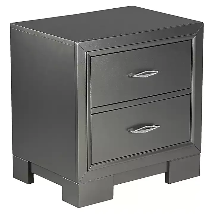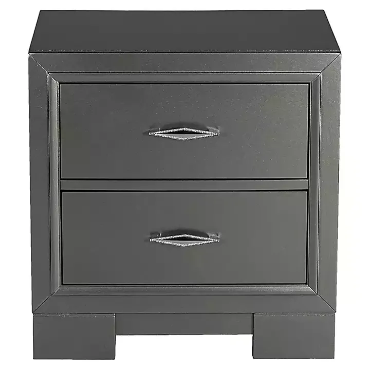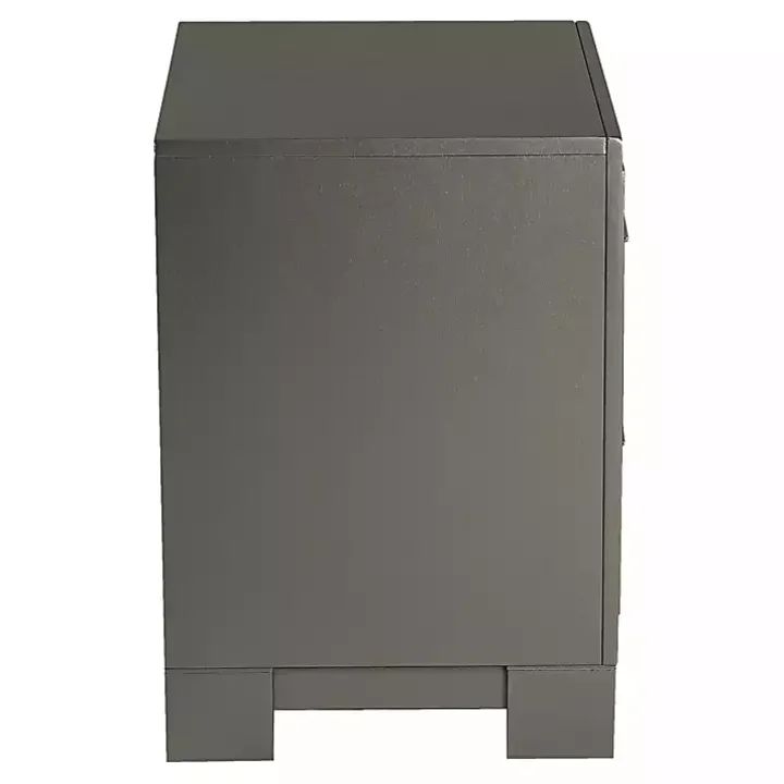 This Metallic Gray Wood Jovan Nightstand is perfect for bringing both style and storage to your bedroom! Its modern design and chic finish will effortlessly elevate your space.