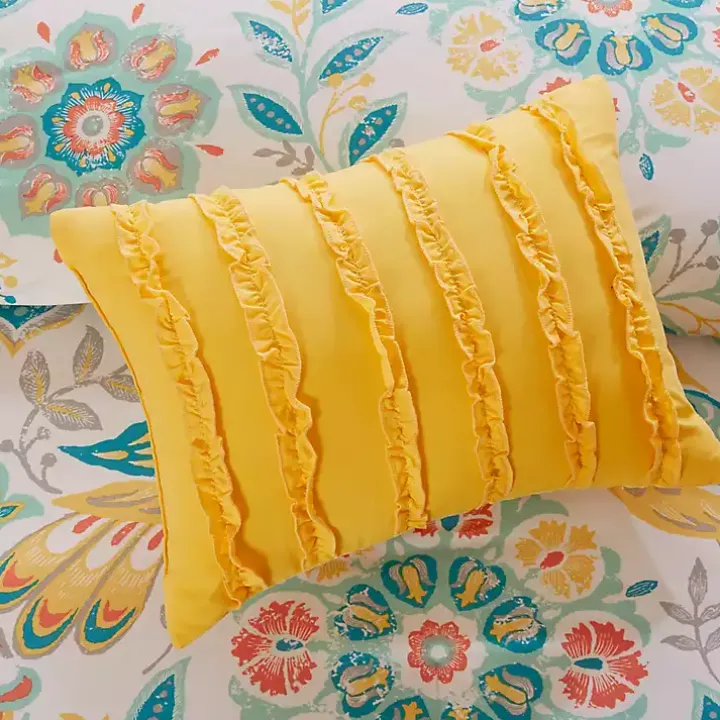 Update your bedroom with the warm, bright charm of this Mona Twin XL 4-pc. Comforter Set. The soft, microfiber comforter features a floral medallion print that pairs perfectly with the decorative pillows, creating a welcoming and colorful aesthetic.