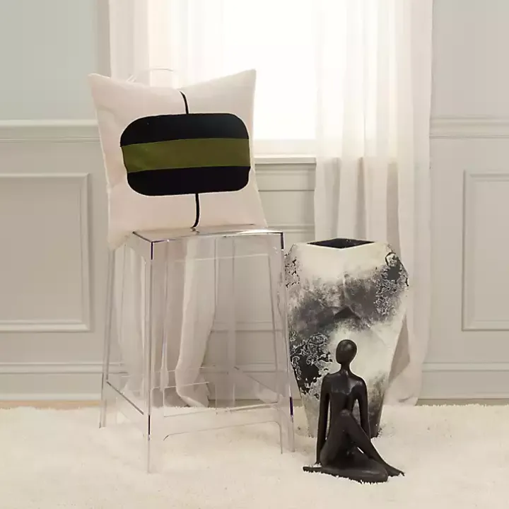 Bring modern flair into any seating area with this Multicolor Block Pillow. Featuring hues of ivory, black, and green, it’s sure to complement your neutral decor.