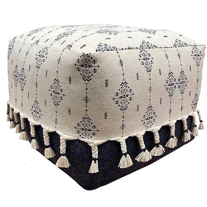 This Navy and Ivory Scandinavian Motif Pouf is a unique accent piece that is both stylish and versatile. Use it as an ottoman, extra seat, or simply a chic embellishment!