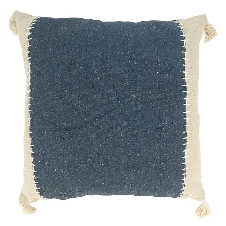 Create a cozy ambiance in your home with this Navy Banded Whipstitch Pillow. Its neutral tones will blend with your decor while textured details make it pop!