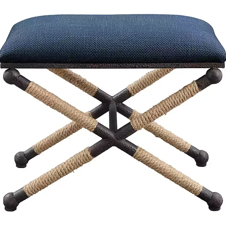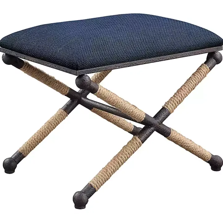 The Navy Seat and Black Metal Ottoman will look perfect in any coastal or farmhouse interior. Featuring woven rope accents, it’s sure to add nautical style to your space.