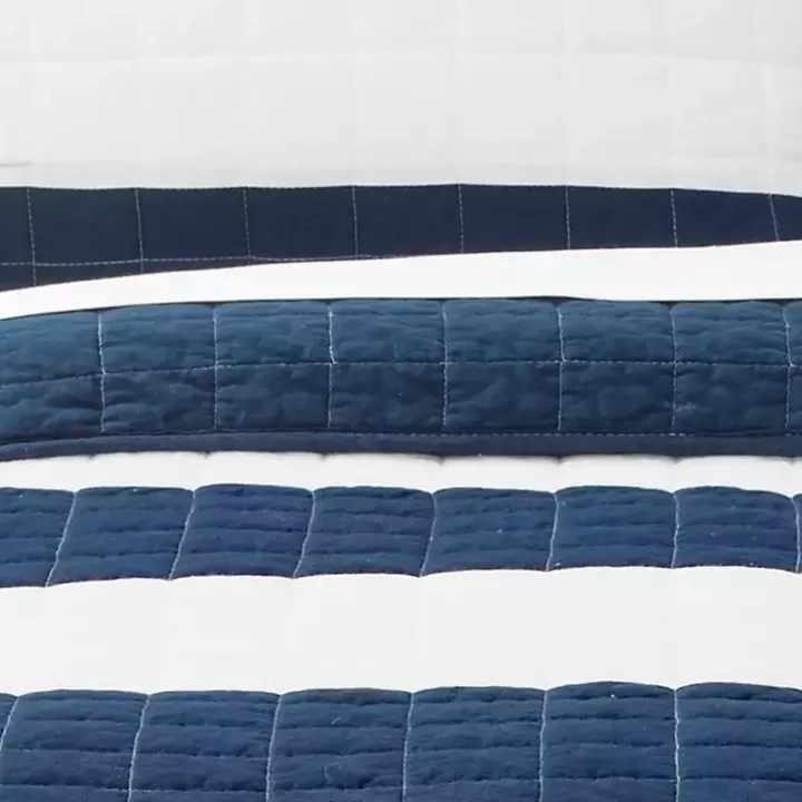 Splash your room with simple, neutral comfort with our Navy Stripe 2-pc. Full/Queen Quilt set! You’ll love the simple navy and white striped pattern.
