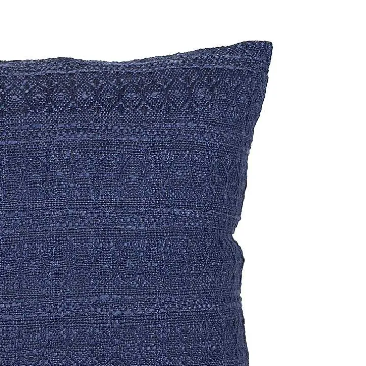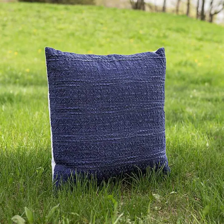 Embolden the vibe of your outdoor oasis with our handcrafted Navy Woven Geo Stripe Indoor/Outdoor Pillow. Its dramatic color and inconspicuous but intricate design make for the perfect stylish accent on any couch, chair, or bed.