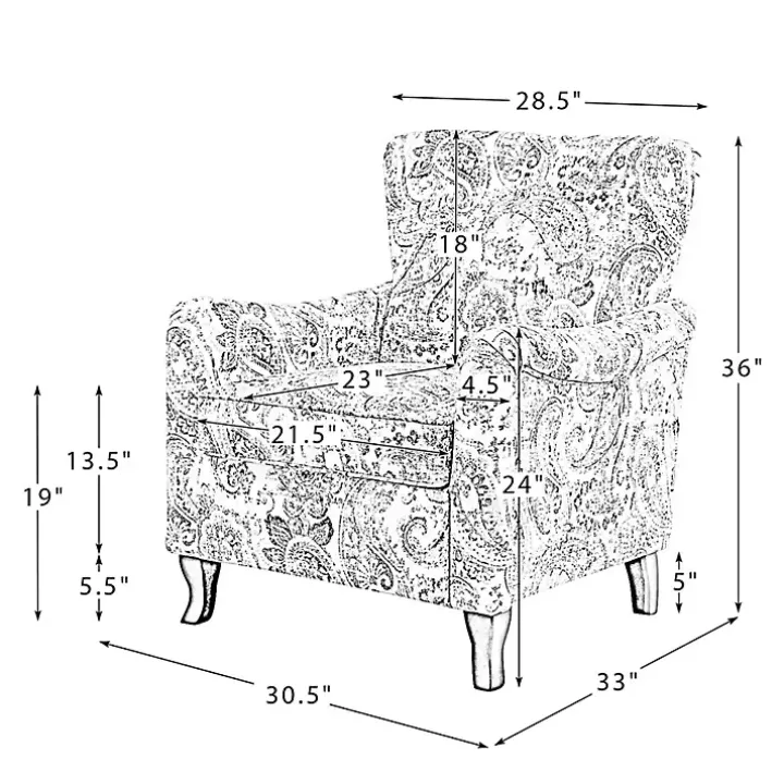 - Chair measures 30.5L x 33W x 36H in.; seat measures 19H in.
