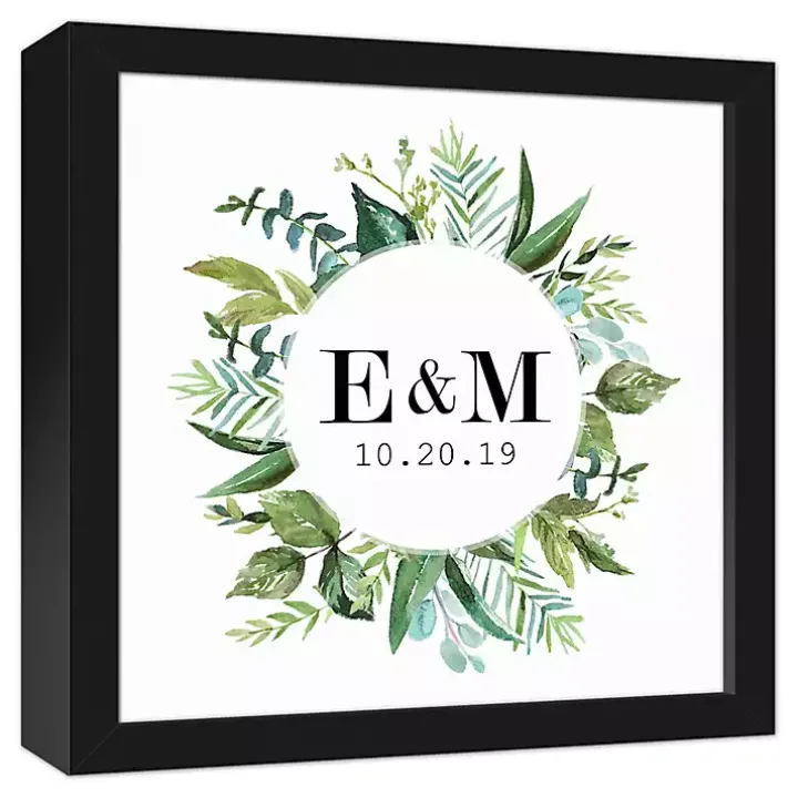 Make this Personalized Framed Monogram Leaves Wall Plaque your own. Enjoy the watercolor leaf wreath with your initials and date inside framed in black.