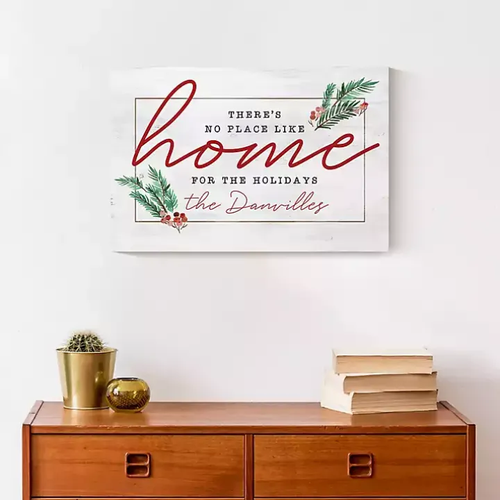 Let guests know that your home is the place to be with this Personalized No Place Like Home Holly Canvas Print. Complete the look of this sentimental art by adding your family name!
