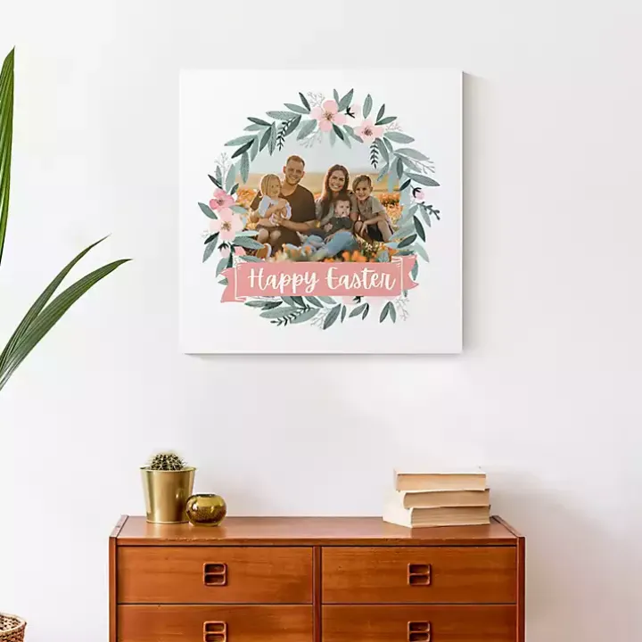 Celebrate the spring season in a sentimental way by showcasing your favorite family picture in this Personalized Photo Easter Wreath Canvas Plaque!
