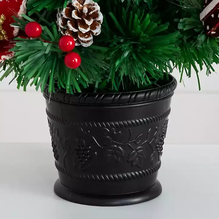 Deck the halls for the holiday season with this Pre-Lit Poinsettia Christmas Tree Arrangement! The star topper and attached ornaments make decorating a breeze. Plus, its mini size makes it perfect for a small space!