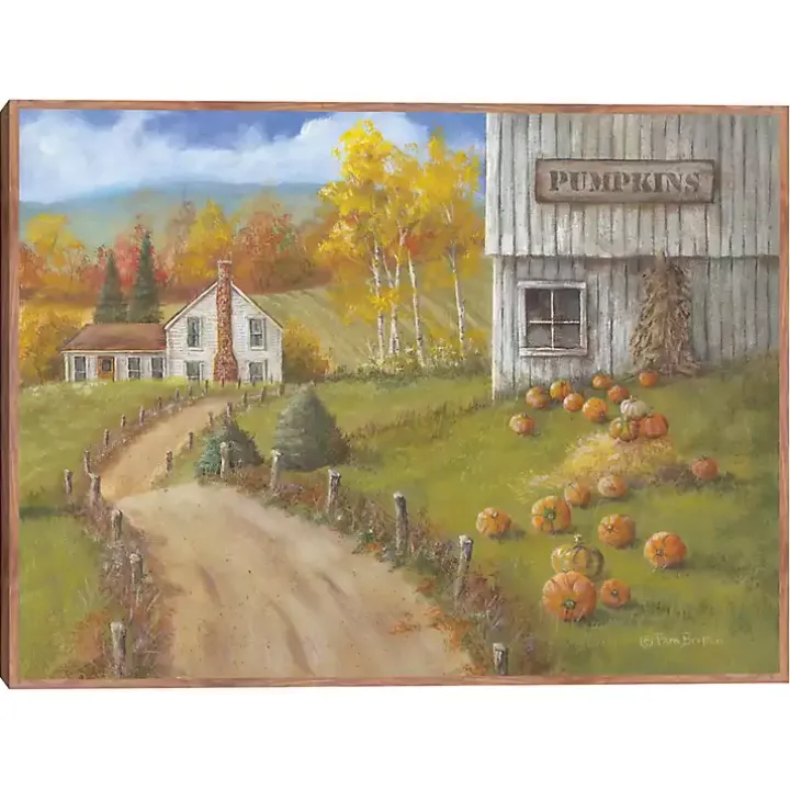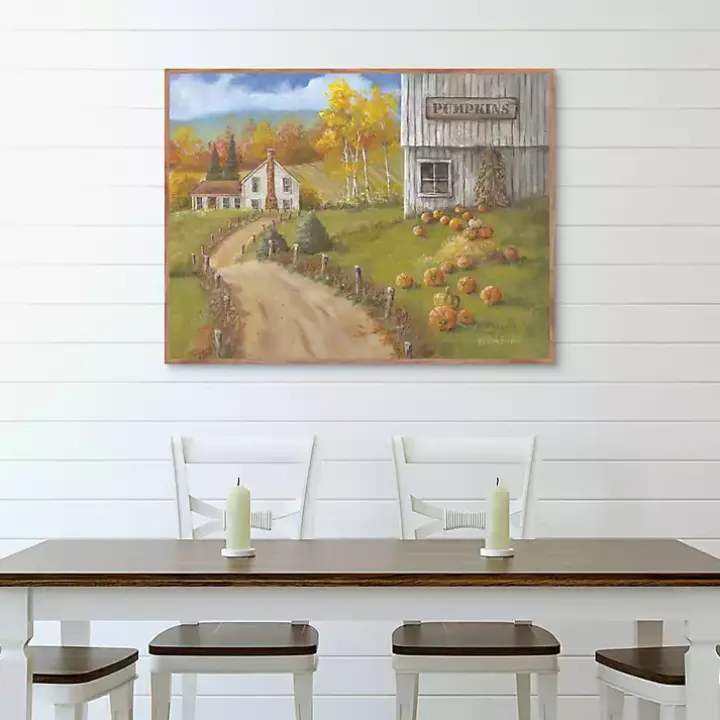 Take a trip to the pumpkin patch with this Pumpkin Farm Framed Canvas Art Print. The cozy, picturesque landscape will bring an autumnal charm to any space!