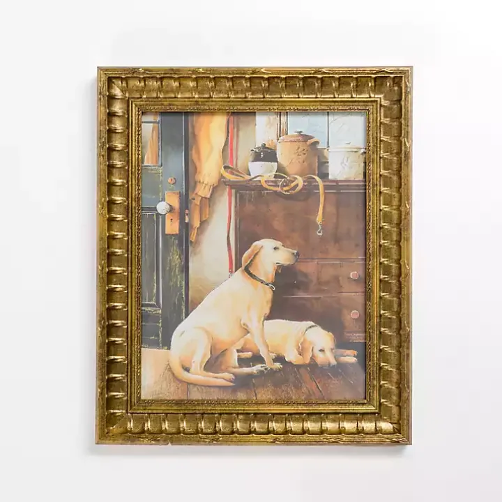The patient pups in this Ready for a Walk Framed Art Print will add the cutest touch to your space! Its golden, vintage inspired frame is sure to stand out in any gallery wall.