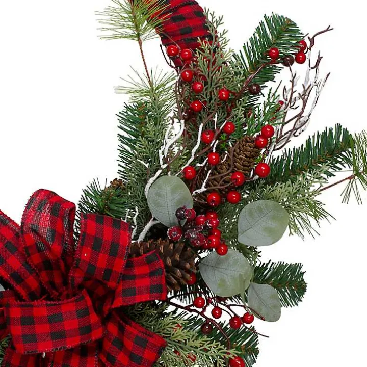 Spread the Christmas joy with this Red and Black Buffalo Check Pine and Berry Wreath. Its cheery holiday colors are sure to brighten your home this year!