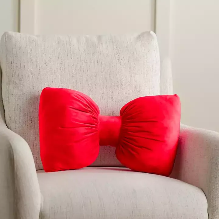 Wrap your Christmas decorations up with this Red Holiday Bow Shaped Pillow. Its bright, whimsical look will put a festive touch of your sofa, chair, or bed!
