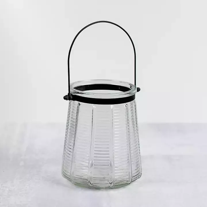 Create a warm glow in your home with this Ribbed Glass Lantern with Metal Handle. Its transparent finish and lovely, subtle design make it a charming accent piece.