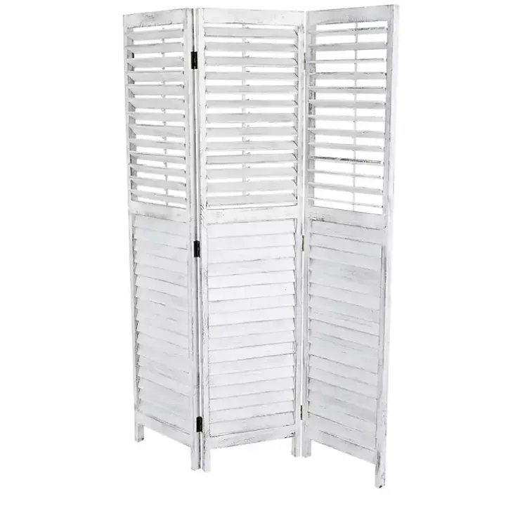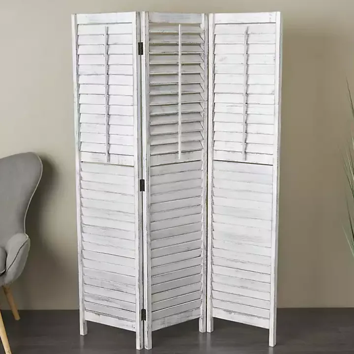 Accent your home with this Rustic White Shutter Trifold Room Divider! This folding divider features a rugged, farmhouse charm, designed to add depth and visual interest while it functions as a privacy screen in your space.
