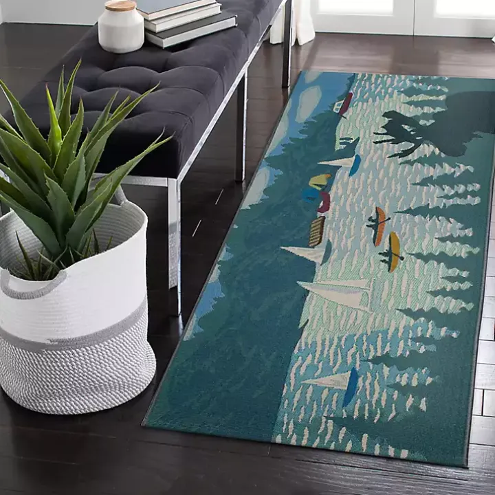 The laid-back feeling of a day at the lake is reflected in this Sailboat Lake Indoor/Outdoor Runner. Its fun design will make the perfect addition to your space this summer!