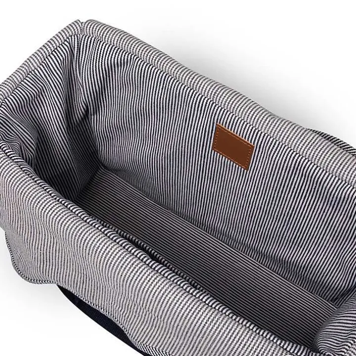 This Seagrass Navy Tie Top Picnic Basket is a must-have addition to your next outdoor adventure. With an insulated liner and easy-tie top, you can be sure that your snacks will stay fresh and easily accessible.