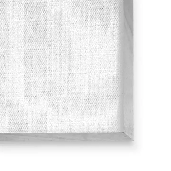 - Gray wooden frame around wrapped canvas
