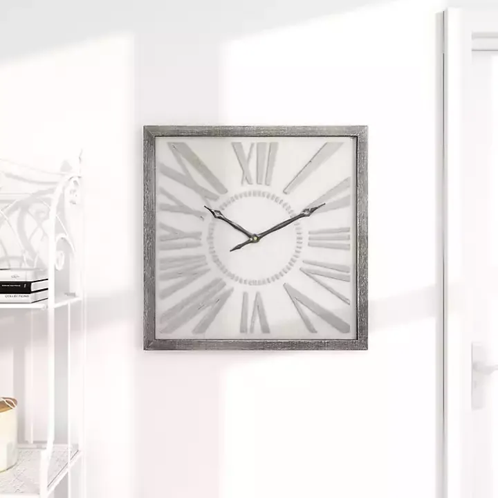 Featuring a unique mix of wood and metal, this Square Galvanized Metal Wall Clock has a chic, rustic look, making it a wonderful accent for farmhouse decor!