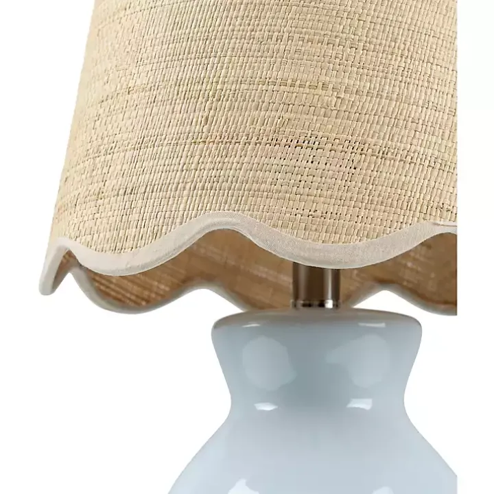 Fun meets function with this Stella Light Blue Mini Table Lamp with Woven Shade. Its soft blue finish and scalloped shade create a modern whimsy that’s ideal for cottage or boho decor!