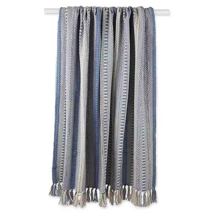 Keep things stylish and comfy with this Stonewash Blue Braided Fringe Throw. Its mixed patterns and woven texture will bring a breath of fresh air to your space.