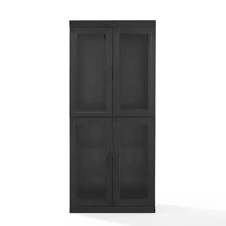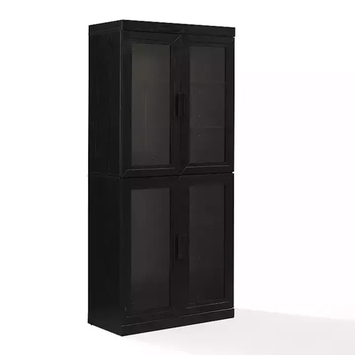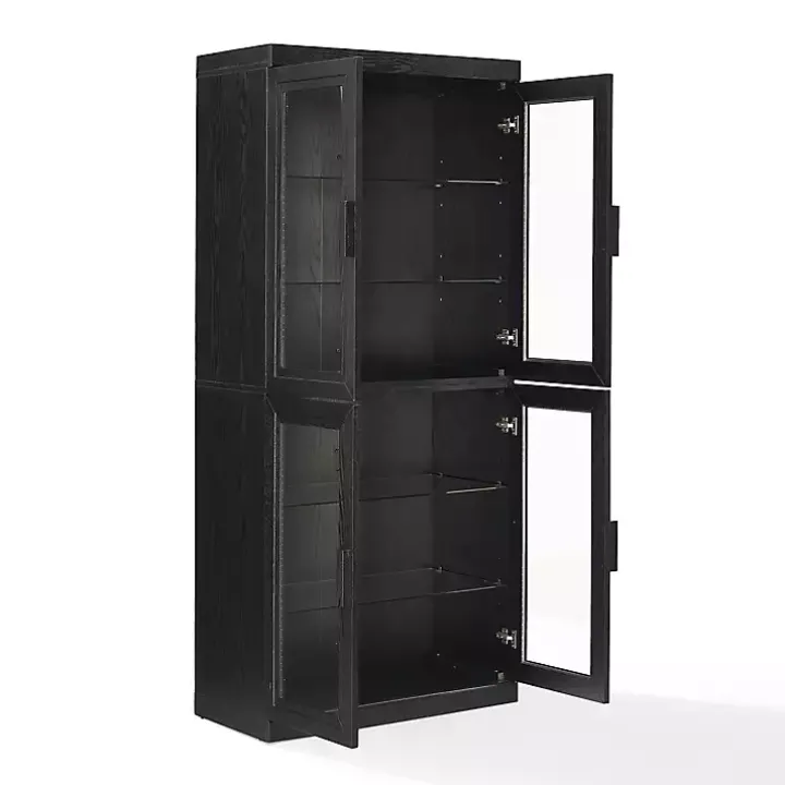 The Tall Black Wood and Glass Door Storage Cabinet is a modular bookcase that fits any space. This modern storage cabinet’s glass doors and wood handles add a touch of elegance to your living room, kitchen, or bathroom. Customize the four interior glass shelves to accommodate everything from dishes to books. Comprised of two modular accent cabinets, this set showcases your items while keeping them organized.