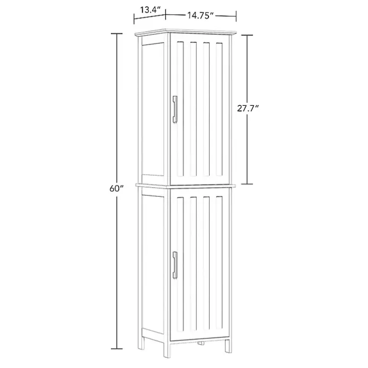 - Cabinet measures 14.75L x 13.4W x 60H in.