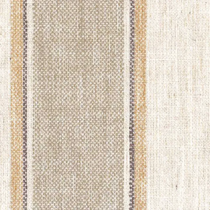 - Upholstered in a tan woven fabric with striped pattern