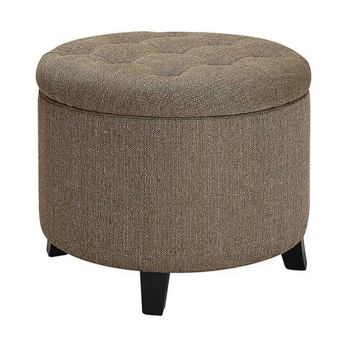 Make the most of your space with this Tan Upholstered Eliza Round Storage Ottoman! This chic ottoman features hidden storage space to keep your room organized. From extra seating to a stylish foot rest, this ottoman has your comfort and style in mind!