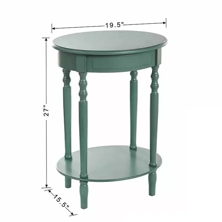 Refresh your space with this Turquoise Wood Oval Emily Accent Table! With traditional spindle legs and unique oval shape, you’ll love styling this two-tier table with your favorite home accents.