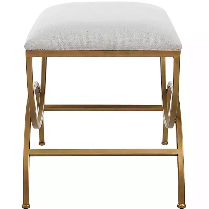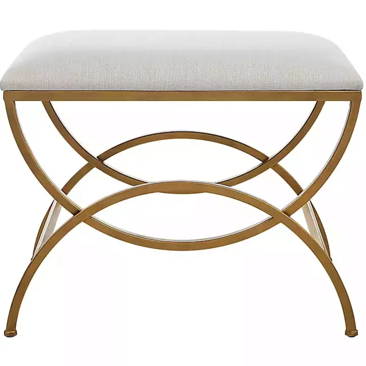 Take a seat in modern-glam style with this Upholstered Gold Metal Arched Frame Bench. Characterized by its overlapping double arch base, it’s sure to make an eye-catching statement!