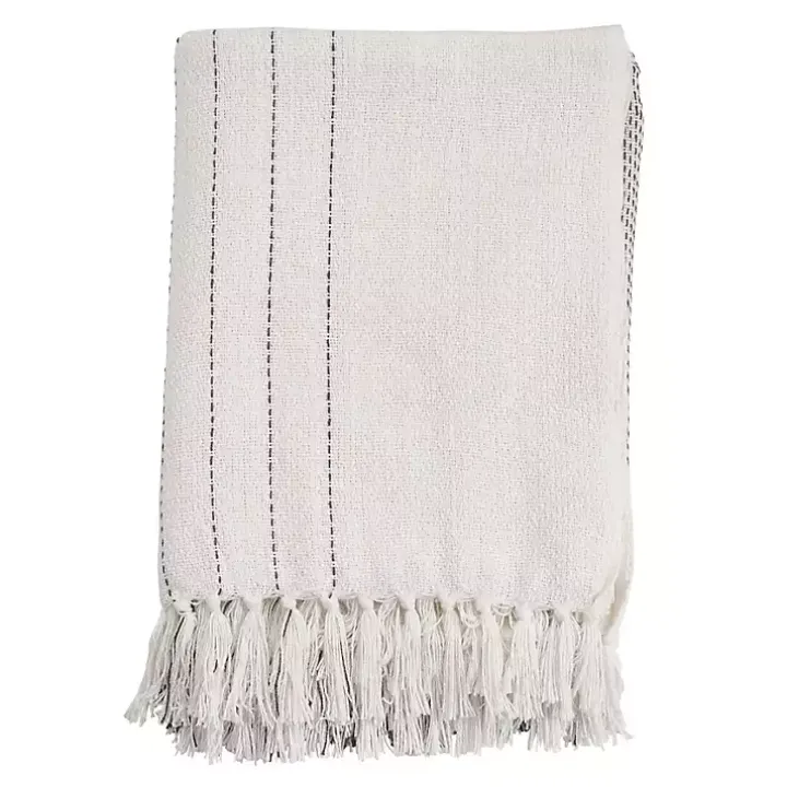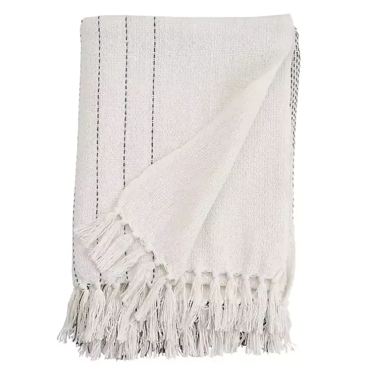 Cuddle up in style with our White and Gray Striped and Fringe Throw Blanket. You’ll love snuggling with it or draping it over your favorite chair or blanket ladder.