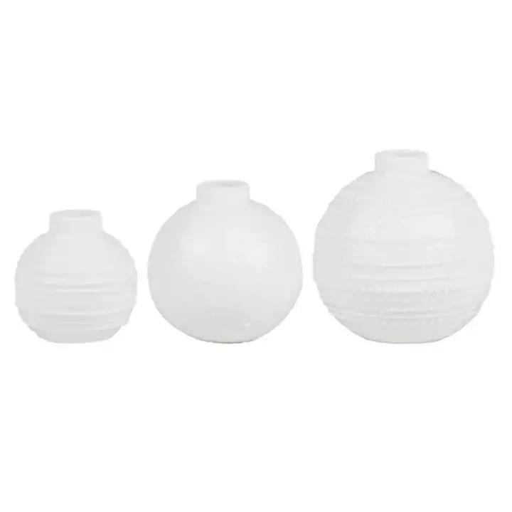 Add a boho look to any room with these White Ceramic Round Textured Mini Vases! These vases are perfect for accenting smaller spaces. You’ll love the varying textured details!