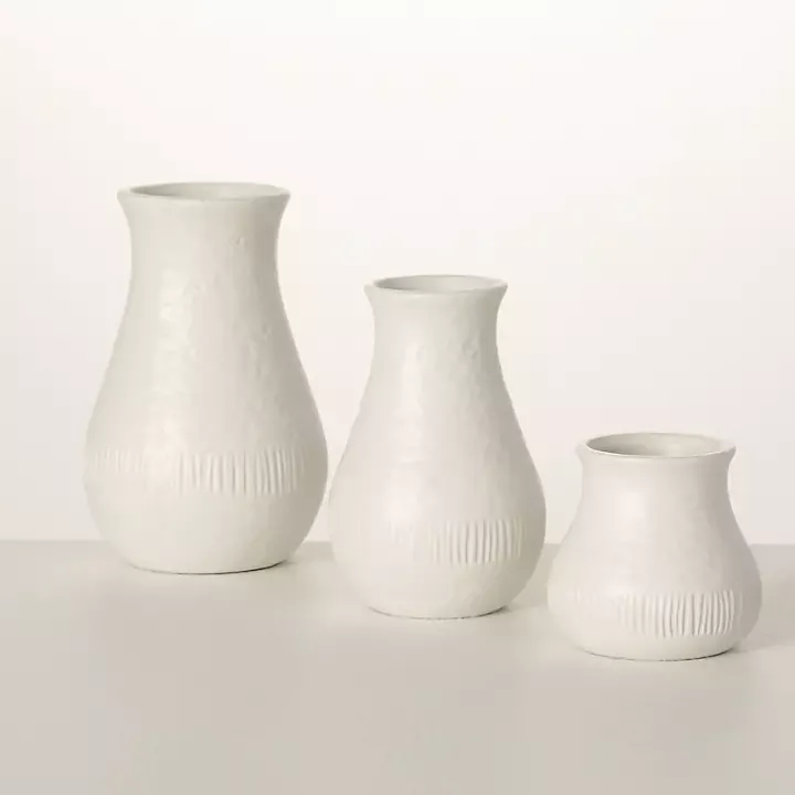 Showcase your flowers in an earthy yet elegant way with the set of White Chiffon Stone Vases. The subtle texture adds visual intrigue while remaining understated enough to blend with your decor.