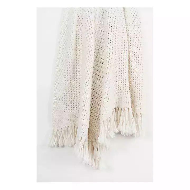 Cuddle up and have a relaxing night in with this White Cotton Tassel Throw. Its tassel accents and soft touch will give your space a warm, cozy feeling!