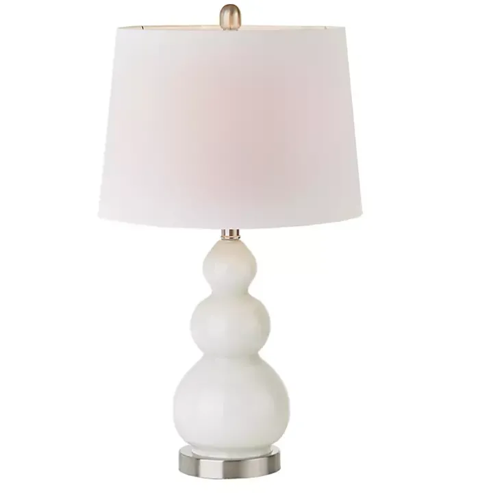 Enhance your space with these White Glass Covey Table Lamps! The beautiful white glass and silver metal base is complemented by a white tapered drum shape shade. Place this table lamp in your living room or bedroom to complete your modern decor!