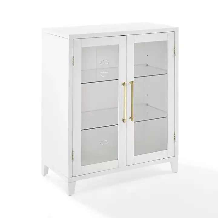 Behind the glass double doors of our White & Gold Glass Door Storage Cabinet, you can display absolutely anything, from décor to books! This sleek cabinet is a striking addition to an entryway or dining room.