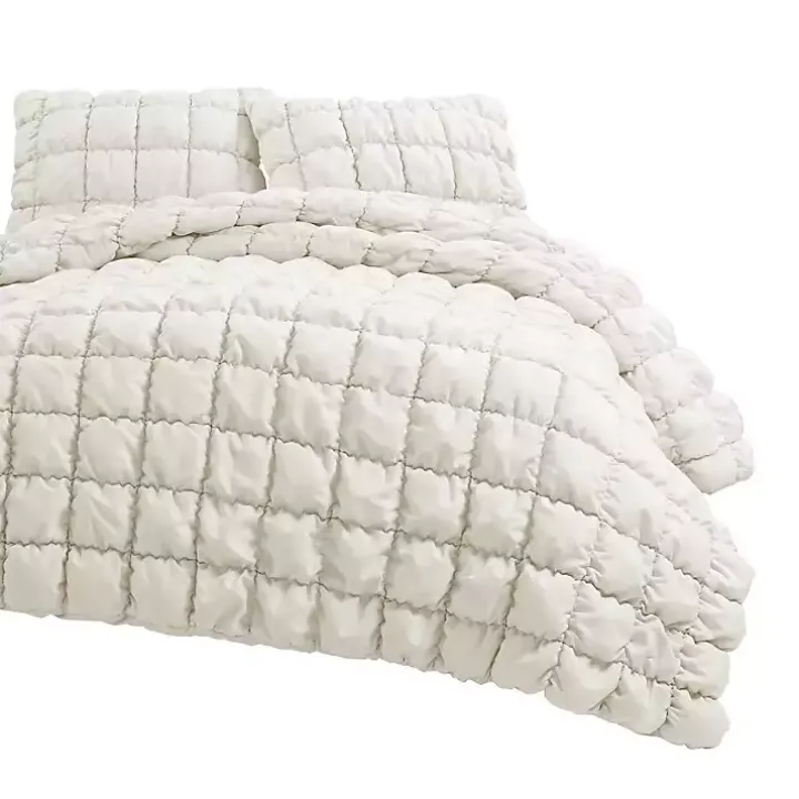 Upgrade your bedroom with the unique, modern style of this White Puff 3-pc. Full/Queen Comforter Set. Its warm, neutral design will elevate any decor style!