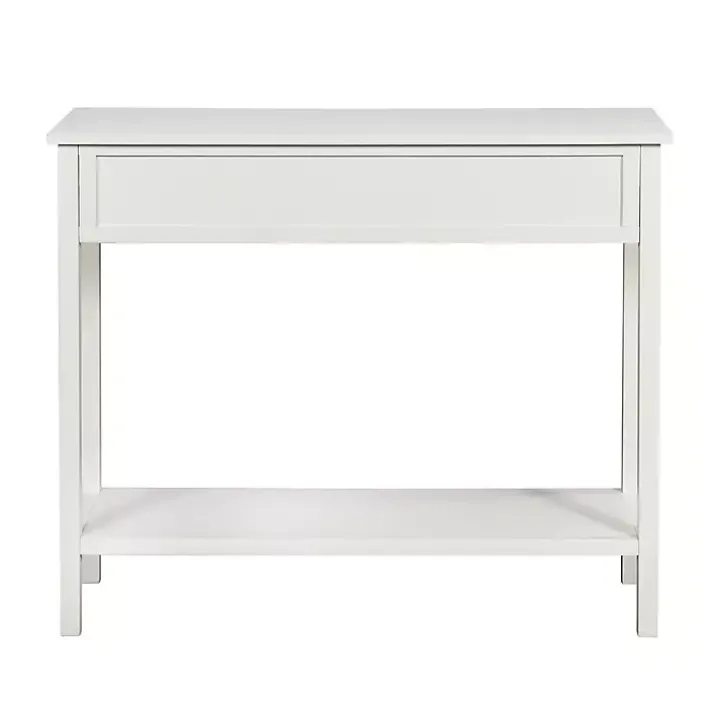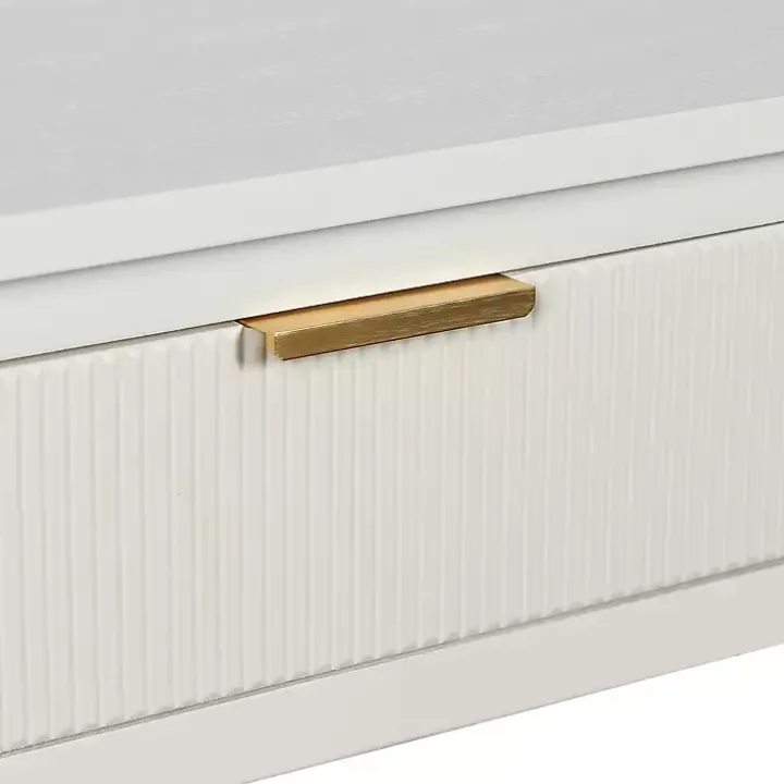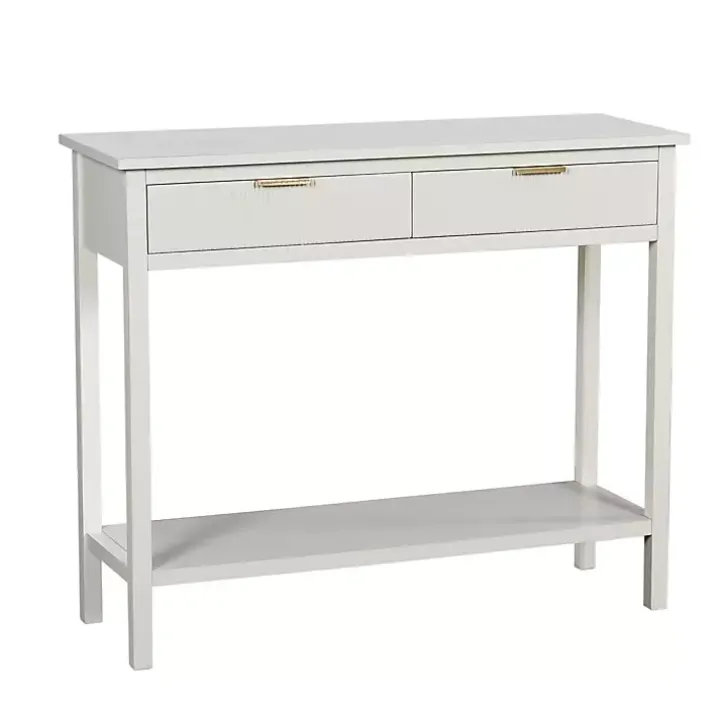 Refresh your space with a modern touch! This White Ribbed Wood 2-Drawer Colleen Console Table features a crisp white finish and chic gold handles for an elegant, elevated look. With two drawers and a lower shelf, this console table has what you need to stay organized in style!
